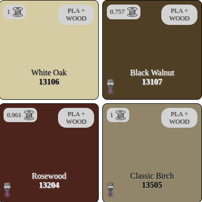 - Filamente mit 'Discontinued' wurden vom Hersteller eingestellt. (Reste zum Verbrauchen)